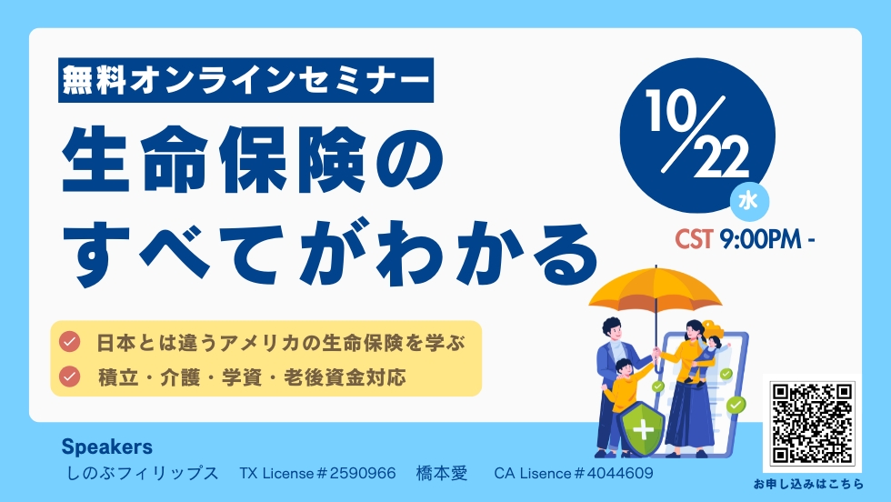お金について学びたい方必見!【ZOOM開催】ファイナンシャルセミナーのご案内皆さん、お金の勉強って難しいですよね? 金融や投資、リタイヤメント、保険など、カレッジファンディングなどお金に関連するさまざまなトピックがあり、専門的な知識がないとなかなか理解することが難しいってい...続きを読む